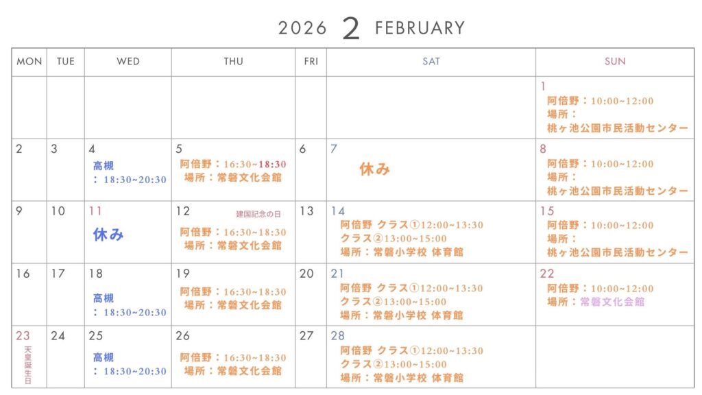 2026年2月高槻スケジュール